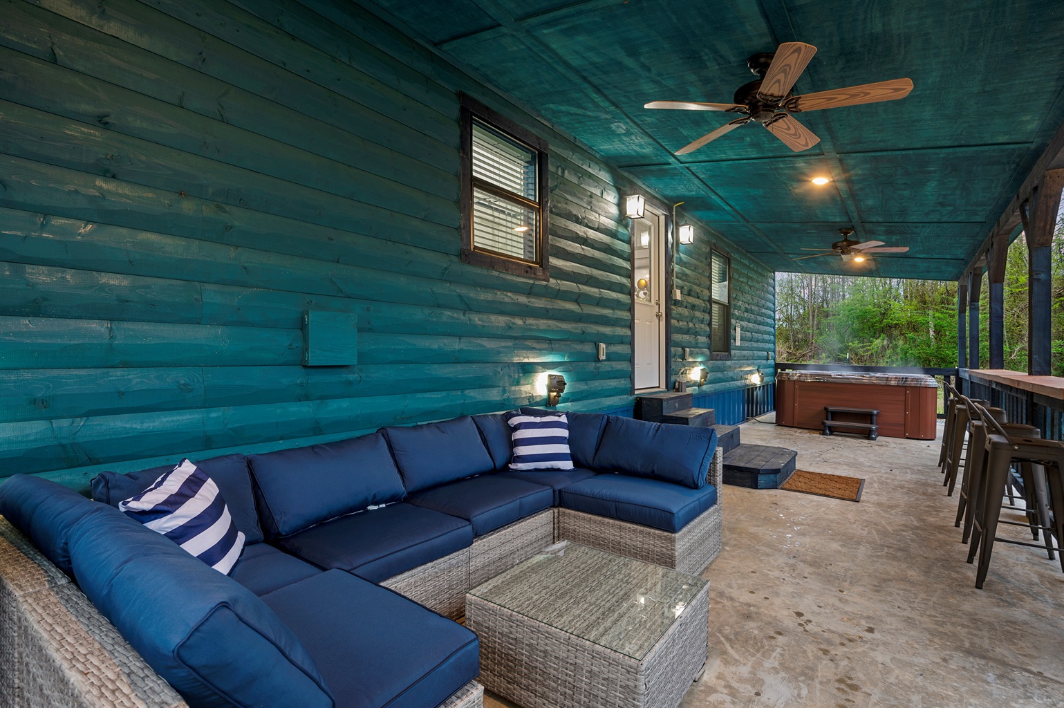 With multiple sleeping areas, a large outdoor setup, and access to the shared Pine Acres property, this cabin is ideal for larger families, friend groups, or anyone looking to spread out and relax.