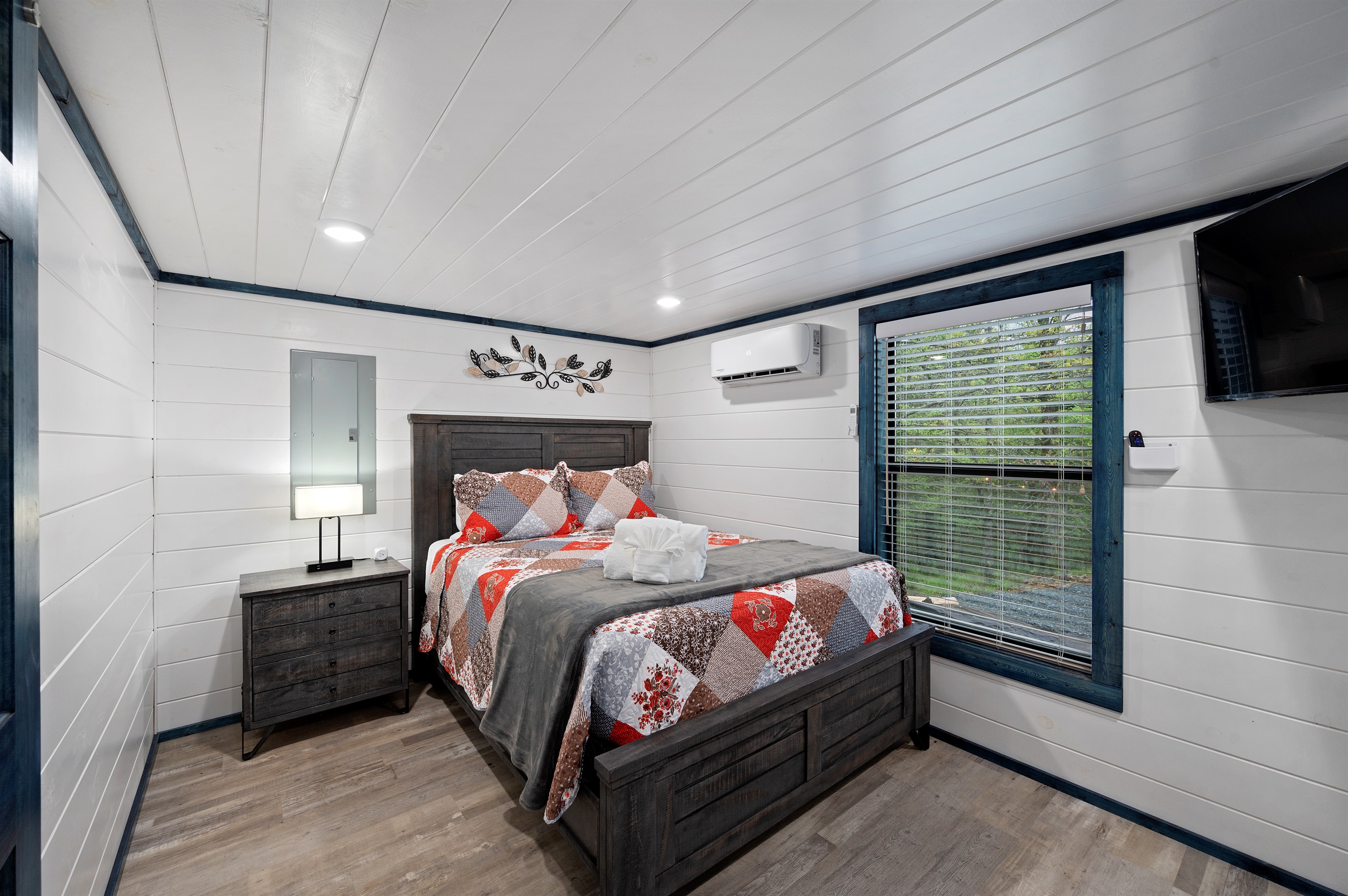 Starview Cabin is located on our Pine Acres Glamping property in Broken Bow and can be booked together with the Sereni-Dome, The Incredi-Dome, and Bigfoot’s Tinyhouse—giving your group access to four unique stays on the same property while still enjoying separate, private spaces.
